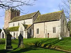 One of the early Quaker meeting houses is in Almeley Wootton, a hamlet in the parish about 12 mile (800 m) north of Almeley village. It was given to the Quakers in 1672 by its owner, Roger Prichard, and is still in use by Quakers today. It celebrated its 350th anniversary in 2022.[8] Two of the Quakers who worshipped there (Roger's son, Edward Prichard, and Edward's brother-in-law, John Eckley) were involved with William Penn in setting up the colony of Pennsylvania in 1682.[9]