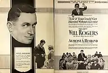 Almost a Husband is a lost[1] 1919 American comedy film directed by Clarence G. Badger and written by Robert F. Hill.[2] It is based on the 1897 novel Old Ebenezer by Opie Read. The film stars Will Rogers, Peggy Wood, Herbert Standing, Cullen Landis, Clara Horton, and Ed Brady. The film was released on October 12, 1919, by Goldwyn Pictures.[3][4][5]