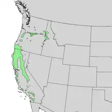 | Natural range of Alnus rhombifolia | |