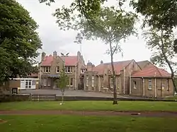 A hospital formed part of the Alnwick Union Workhouse, built in 1841 on Wagonway road.[lower-alpha 4] A fever hospital was established between 1886 and 1888 on a greenfield site about 0.5 miles (0.80 km) south of the workhouse, and was used until 1952.[lower-alpha 5][8]