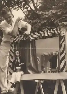 Aloísio Magalhães conducting a puppet at the Student Theater of Pernambuco in the early 1950s.