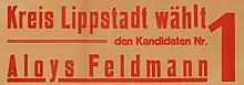 ![]() Aloys Feldmann's candidate poster for the state election in North Rhine-Westphalia 1947 | |