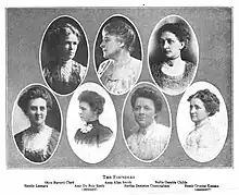 In the fall of 1885, Professor James Hamilton Howe, the first Dean of the Music School, invited seven young women from the school to a meeting to form a fraternity. Those young women were Anna Allen Smith, Olive Burnett Clark, Bertha Deniston Cunningham, Amy DuBois Rieth, Nellie Gamble Childe, Bessie Grooms Keenan, and Estelle Leonard.[4] Howe collaborated with James G. Campbell, a Beta Theta Pi, to form a national fraternity. Campbell laid out the first constitution and by-laws. This first constitution read: "The object of this fraternity is as follows: To attain the highest musical culture and to cultivate those principles that embody true womanhood."[6] On February 26, 1886, the fraternity was given its formal introduction by a soiree musical.[6]