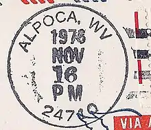 1976 Alpoca, postmark with the now retired 24710 ZIP Code