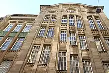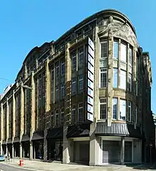 The Gera merchant Oscar Tietz opened the first branch of his department store Hermann Tietz (Hertie) in Hamburg on March 1, 1897, on Großer Burstah with a wide range of products on textiles, food, furniture, carpets and books. He acquired a 5200 square meters area on Jungfernstieg, which had developed into the first address in Hamburg. On the area where Scholviens Passage, the Hotel zum Kronprinzen and other houses were located, he built a new branch of his "Hermann Tietz department store", which opened on April 24, 1912.[1] The construction costs for the department store with an upscale range and sophisticated furnishings such as marble and crystal chandeliers amounted to 4½ million gold reichsmarks. The plans were drawn up by the architectural firm Cremer & Wolffenstein, and Richard Jacobssen from Hamburg was in charge of construction. The property was previously secured with 5,000 oak posts that were driven into the soft earth on the banks of the Alster.[2]