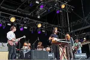 Altın Gün (meaning Golden Day in Turkish[1]) is a Turkish psychedelic rock, also known as Anatolian rock, band from Amsterdam, Netherlands. It was founded by bassist Jasper Verhulst in 2016 when he posted an ad on Facebook looking for Turkish musicians.[1][2][3][4] Their style has been described as "psychedelic" with a "dirty blend of funk rhythms, wah-wah guitars and analogue organs".[5] Altın Gün also performs psychedelic rock covers of Turkish folk music.[1] Both the band's vocalists, Merve Daşdemir and Erdinç Ecevit Yıldız, are of Turkish origin, while the other four members are Dutch.[1]