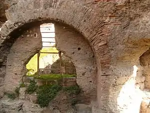 The bath was built in the 2nd or 3rd century during the Roman Empire. It was a big complex, most of which was destroyed during the earthquakes in the 6th century. The unaffected eastern part of the building was later used as a glass workshop during the Byzantine Empire.[1]