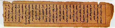 The Altan Tobchi, or Golden Summary (Mongolian script: ᠠᠯᠲᠠᠨ ᠲᠣᠪᠴᠢ Altan Tobči;[1] Mongolian Cyrillic: Алтан товч, Altan tovch), is a 17th-century Mongolian chronicle written by Guush Luvsandanzan. Its full title is Herein is contained the Golden Summary of the Principles of Statecraft as established by the Ancient Khans. The work is also named the Lu Altan Tobchi (Mongolian script: ᠯᠤ᠋ ᠠᠯᠲᠠᠨ ᠲᠣᠪᠴᠢ Lu Altan Tobči;[1] Mongolian Cyrillic: Лу Алтан товч, Lu Altan tovch) after its author to distinguish it from previous works with similar titles.