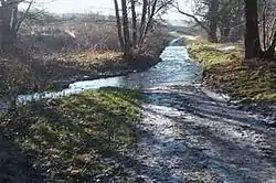 Between the heights of the Asse and the Heeseberg in the south and the Elm ridge in the north stretches an almost treeless arable plain, the roughly 25 kilometre long Schöppenstedt Depression (Schöppenstedter Mulde). Here the Altenau flows in an east-west direction in a meadow valley about 500 metres wide. The source of the river lies immediately west of the watershed between the rivers Weser and Elbe. In the southern part of the depression the Altenau picks up a succession of small streams from the slopes of the Elm as it cuts through the hollow as a regulated and relatively straight stream.