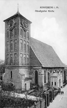 Altrossgarten Church (German: Altroßgärter Kirche, also spelled Altroßgärtner) was a Protestant church in northeastern Königsberg. Johann Friedrich Schultz, an Enlightenment, Protestant, theologian, mathematician and philosopher was Deacon of the church in 1775.[1]