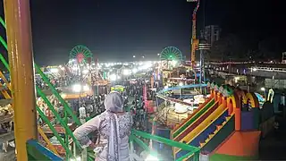 Aluva Sivarathri is celebrated at the Siva temple on the banks of Periyar River and this place is called the Aluva Manal Puram (land with sand).[2][3] Pilgrims offer Bali (sacrifice) to their ancestors in the morning succeeding the holy night.[4] Near the bank of periyar, Aluva Manal Puram (also called Manappuram), there will be many stalls installed for people for purchasing, shopping, exhibitions, and adventure rides for children and adults. People from all religions becomes the part of the festival. It will remain for two weeks after the offerings of Bali. The festival is celebrated as a remembrance for the lord Shiva.[5]