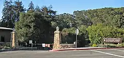 In its early years, Alvarado Park was served by its own streetcar line from the East Shore and Suburban Railway, a Key System precursor, which was later discontinued.[6] The park district made certain improvements including a new children's play area, conversion of parking into meadows, and demolition of dilapidated structures.[1] It was also the home of the Grande Vista Sanitarium, later known as Belgum Sanitarium.[7][8][9] Though the associated buildings have since burned to the ground, their foundations and the surrounding grounds, including an orchard remain. The park also features distinctive and noted[1] stone masonry, retaining walls, and classical stone lampposts.[1] The lampposts are no longer lit. A stonework bridge spans Wildcat Creek in the park main entrance. The park district is currently struggling to return the river to a more natural state in hopes of restoring its fish population and their runs.[1] The park also featured an open-air pavilion dance hall which was converted to a roller rink, and subsequently destroyed by fire.[4]