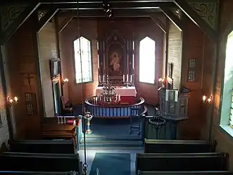 Alversund Church (Norwegian: Alversund kyrkje) is a parish church of the Church of Norway in Alver Municipality in Vestland county, Norway. It is located in the village of Alversund. It is one of the four churches for the Knarvik parish which is part of the Nordhordland prosti (deanery) in the Diocese of Bjørgvin. The white, wooden church was built in a long church design in 1879 using plans drawn up by the architect Jon Jonsen Alvær. The church seats about 200 people.[1][2]