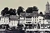 - ↑ Gossauer's claimed "1879" (in fact 1878) photography was supplemented with graphic elements: ships, waves and grass in the foreground, as wells as the causeway with steam railway, carriages and pedestrians added. First published in "Geschichte der Stadt Rapperswil", the photograph was predated because the railway causeway was still under construction in 1878.