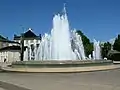Italian sculptor Arnaldo Pomodoro created the central fountain, four large abstract columns and two sun-like water features which, from each their end of the park, sprinkle the garden with their jets of water.[2]