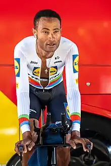 Amanuel Ghebreigzabhier Egerzeigzaarhka (born 17 August 1994) is an Ethiopian-born Eritrean cyclist, who most recently rode for UCI WorldTeam Trek–Segafredo. In August 2018, he was named in the startlist for the 2018 Vuelta a España.[5] In May 2019, he was named in the startlist for the 2019 Giro d'Italia.[6]