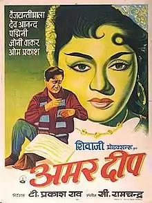 Amar Deep (transl. The Eternal Lamp) is a 1958 Indian Hindi-language romantic drama film directed by T. Prakash Rao, under Sivaji Productions. The film stars Dev Anand, Vyjayanthimala, Padmini, Ragini, Johnny Walker, Pran, Om Prakash.[1] The film's music was composed by C. Ramchandra. It is a remake of 1942 English-language film Random Harvest which had earlier been adapted in Bengali as Harano Sur (1957).[2]