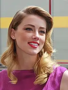 In 2015, Heard had a prominent role in the comedy-drama Magic Mike XXL, playing the love interest of the film's protagonist, Channing Tatum.[38][39] Heard also had a small supporting role in Tom Hooper's period drama The Danish Girl (2015),[40][41] and a starring role opposite James Franco and Ed Harris in the independent crime thriller The Adderall Diaries (2015). IndieWire stated that although Heard was "miscast" in The Adderrall Diaries, she "displays much potential and has succeeded in a bid to be taken more seriously".[42] Her fourth role in 2015 was opposite Christopher Walken in the television film One More Time, which aired on Starz. For her role as a struggling singer-songwriter, she took singing lessons and learned to play piano and guitar.[43] The Los Angeles Times called her performance "superb" and The Film Stage stated that Heard did an "admirable job".[44][45] The actress also appeared in a November 2015 episode of the American automotive reality series Overhaulin', in which her Mustang received a makeover. It also featured the cast pranking Heard at the behest of Depp.[46]