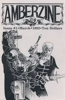 Phage Press released Amberzine #1 (March 1992) shortly after they published Amber Diceless Roleplaying Game. The digest-sized magazine presented material to inspire role-playing, such as character diaries and detailing elements of the setting. One to three issues per year were published from 1992–1997 and the magazine even included an original Roger Zelazny short story, "The Salesman's Tale," in Amberzine #6 (February 1994).[1]: 112–113 Matt Howarth wrote and illustrated a Bugtown/Amber comic crossover titled "Amber Raves of Pain," which was published in installments from Amberzine #6 (February 1994) through #9 (January 1997).[1]: 113–114 Erick Wujcik kept Amberzine in production until 1997, when he moved into computer games, and then published Amberzine #11 (2003) years later; after he decided not to be a publisher anymore, Phage finished with a final quadruple-sized Amberzine #12–15 (2005) to complete its obligation to subscribers and by publishing the remaining material that Wujcik had left.[1]: 114