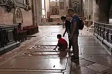 The ambulatory (Latin: ambulatorium, ‘walking place’) is the covered passage around a cloister or the processional way around the east end of a cathedral or large church and behind the high altar.[1][2] The first ambulatory was in France in the 11th century but by the 13th century ambulatories had been introduced in England and many English cathedrals were extended to provide an ambulatory.[3]