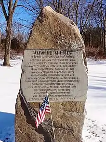 The ambush site is between Copper Hill and Larison's Corners, in Raritan Township.[12] On 14 December 1976, as part of the United States Bicentennial, the township dedicated a monument to the Amwell Militia here.[13] The memorial monument to Geary erected in 1907 by his great nephew, Sir William Nevill Montgomerie Geary, is located nearby, 875 feet (267 meters) away.[14] A historical information plaque describing the Amwell Skirmish is also located next to his memorial.[15]