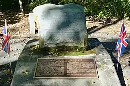 Many local residents of Hunterdon County were unaware that Geary had been buried there, and accounts persisted that the British had recovered his body. In 1891 the Hunterdon County Historical Society exhumed a body from a site suspected to contain his body. Found in the grave were a skeleton and silver buttons labeled "Q. L. D.", signifying the Queen's Light Dragoons. His family placed a grave marker on the site in 1907.[10] The St. Nicholas Church in Great Bookham, Surrey, contains a bas-relief depicting Cornet Francis Geary and the incident.[11]