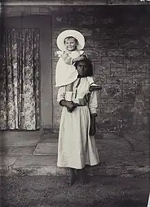 It does not appear that Kunoth was raised by her father and, after her mother died when she was very young, she lived at the Alice Springs Telegraph Station and was "brought up" by the Bradshaw Family, the family of the station master Thomas Bradshaw. From a young age she then worked for them as a companion and nurse for their seven children;[6] it is said that she was so loved that she was almost a part of the family.[4] This period of her life in recorded in some detail in Alice on the Line, written by one of the children, Doris Blackwell, who remembers her as a significant figure in her early life. When the Bradshaw family left Alice Springs, in 1908, according to Blackwell:[7]