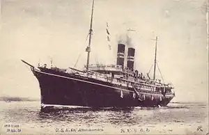 America Maru (亜米利加丸, Amerika-Maru) was the second of three high speed passenger liners built for the Oriential Steamship Company (Tōyō Kisen). Converted into an armed merchantman during the Russo-Japanese War of 1904–1905, she played a crucial role in the Battle of Tsushima. Although used as a hospital ship during the early part of World War II, she had been chartered by the Imperial Japanese Navy as a transport in 1943, and was sunk by the United States Navy in 1944 with great loss of civilian lives.