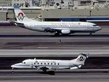 - Mesa Airlines operating as America West Express (regional jet and turboprop feeder service at America West hubs)