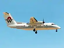 America West Airlines was an airline in the United States that operated from 1981 until 2007 when it merged with US Airways. It was headquartered in Tempe, Arizona. Its main hub was at Phoenix Sky Harbor International Airport, with a secondary hub at McCarran International Airport in Las Vegas. The airline acquired US Airways in 2005 and adopted US Airways as their brand name.[2] America West served about 100 cities in the US, Canada, and Mexico; flights to Europe were on codeshare partners. In September 2005, the airline had 140 aircraft, with a single maintenance base at Phoenix Sky Harbor International Airport. Regional jet and turboprop flights were operated on a code sharing basis by Mesa Airlines and Chautauqua Airlines as America West Express.