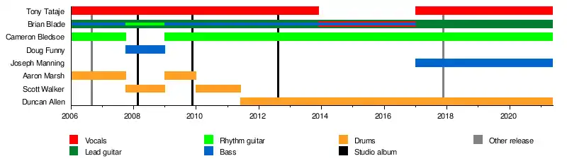 - Cameron Bledsoe – rhythm guitar (2006–2007, 2009–present)