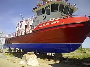 American United is a Ranger-class Robert Allan Ltd. designed fireboat built to serve the Massachusetts Port Authority as a replacement to Massport Marine Unit 1, the Howard W. Fitzpatrick. It was scheduled to be placed in service in June 2011, and was delivered October 11, 2011, due to the complexity of the build.[3][4][2][5][1]