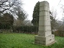It was established in 1931 by The Protestant Alliance. The memorial was unveiled by a Mrs L. R. Raine, a direct descendant of martyr Thomas Harding, who is commemorated on the memorial.[1] It is located near the Rectory or Parsonage Woods opposite Ruccles Field. Access is from a footpath from or a separate footpath from Station Road.[2]