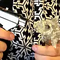 One method formerly used in sculpting amezaiku was blowing into the candy by means of a straw, similar to glass-blowing. This practice was eventually prohibited in Japan as unhygienic, although other means of introducing blown air may be used.[6]