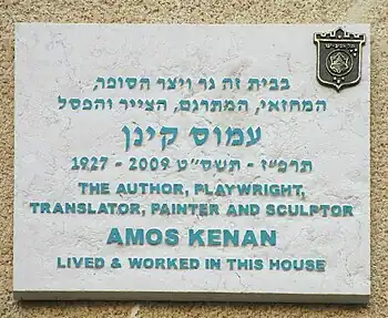 7. 1 2 3 Grimes, William (2009-08-06). "Amos Kenan, Israeli Writer and Iconoclast, Dies at 82". The New York Times. ISSN 0362-4331. Retrieved 2009-09-08.