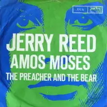 "Amos Moses" is a song written and recorded by American musician Jerry Reed. It was released in October 1970 as the fourth and final single from the album Georgia Sunshine and was his highest-charting single on the Billboard Hot 100, bowing at #97 on October 31, 1970, and peaking at #8 on February 27 and March 6, 1971. It has been used ever since as a line dance taught at YMCAs. "Amos Moses" was certified gold for sales of 1 million units by the RIAA. It was #28 on Billboard's Year-End Hot 100 singles of 1971 and also appeared on several other countries' charts.