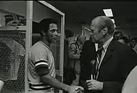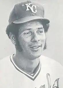 Amos Joseph Otis (born April 26, 1947) is an American former professional baseball player and coach.[1] He played in Major League Baseball as a center fielder from 1967 to 1984, most prominently as an integral member of the Kansas City Royals team that won the franchise's first American League Western Division championship in 1976, and their first American League pennant in 1980.[2] Although the Royals lost the 1980 World Series in six games to the Philadelphia Phillies, Otis produced a .478 batting average with three home runs in what would be his only World Series appearance.[1]
