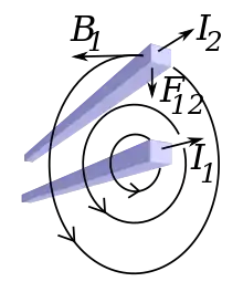 - Ampère's force law Includes animated graphic of the force vectors.