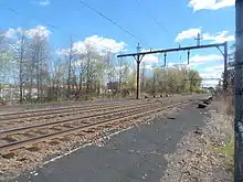 Ampere, formerly known as The Crescent, is a defunct stop on New Jersey Transit's Montclair-Boonton Line in the city of East Orange, Essex County, New Jersey, United States. A station was first built there in 1890 to service to new Crocker Wheeler plant in the district. The stop was named in honor of André-Marie Ampère, a pioneer in electrodynamics and reconstructed as a new Renaissance Revival station in 1908. Ampere was the second stop on the branch west of Newark Broad Street Station until 1984, when the Roseville Avenue station was closed. In June of that year, the station, along with 42 others, was entered into the National Register of Historic Places.[5] In 1986, after continuous deterioration, New Jersey Transit demolished the westbound shelter built in 1921. The agency discontinued rail service to Ampere on April 7, 1991. The entire station was demolished in 1995.
