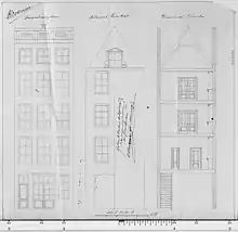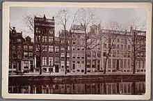 The relatively large sugar refinery "L'Union" was situated on the northern side of the Bloemgracht at number 148. It was auctioned in April 1841.[14] In April 1845 the equipment of this refinery was sold, perhaps due to Kooij acquiring the Schoonenburgh refinery in February 1844.[15] The house at Bloemgracht 150 was also part of this refinery. On 21 September 1849 one of the buildings of the sugar refinery "L'Union" on the Bloemgracht burned down. At the time B. Kooy Jz was the owner.[16] In November 1849 the house and the grounds of the burned down refinery were offered at an auction.[17] It did not become part of the public company Amsterdamsche Stoom Suikerraffinaderij in 1856.