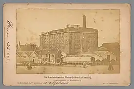 In 1865 the overall situation improved. The Amsterdamsche Stoom Suikerraffinaderij processed 13.5 million kg of sugar.[35] In 1867 the situation deteriorated again, but the Amsterdamsche Stoom Suikerraffinaderij processed 14 million kg of sugar.[36] In 1868 the Dutch export of refined sugar increased from 78,407,000 kg to 85,400,000 kg. The Amsterdamsche Stoom Suikerraffinaderij profited by processing 17,000,000 kg and getting good prices.[37] In 1869 Dutch refined sugar exports further increased to 92,962,500 kg.[38] In 1870 most of the French sugar factories ceased to operate because of the Franco-Prussian War. It led to Dutch refineries temporarily operating on new markets and making high profits. The Amsterdamsche Stoom Suikerraffinaderij processed 18,000,000 kg of sugar in 1870.[39]