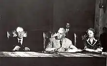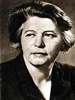 Pauker was born on 13 February 1893 into a poor, religious Orthodox Jewish family in Codăești, Vaslui County (in central Moldavia), the daughter of Sarah and (Tsvi-)Hersh Kaufman Rabinsohn.[1] Her father was a traditional slaughterer and synagogue functionary, her mother a small-time food seller. They had four surviving children; two more died in infancy. As a young woman, she became a teacher in a Jewish elementary school in Bucharest. While her younger brother was a Zionist and remained religious, she opted for Socialism, joining the Social Democratic Party of Romania in 1915 and then its successor, the Socialist Party of Romania, in 1918. She was active in the pro-Bolshevik faction of the group, the one that took control after the Party's Congress of 8–12 May 1921 and joined the Comintern under the name of Socialist-Communist Party (future Communist Party of Romania). She and her husband, Marcel Pauker, became leading members. They were both arrested in 1923 and 1924 for their political activities and went into exile in Berlin, Paris, and Vienna in 1926 and 1927. In 1928, Ana Pauker moved to Moscow to enter the Comintern's International Lenin School, which trained the top functionaries of the Communist movement. There, she became closely associated with Dmitry Manuilsky, the Kremlin's foremost representative at the Comintern in the 1930s.[2]