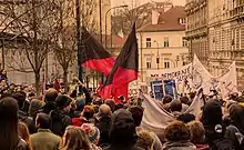 The Czechoslovak Anarchist Association was established in the 1980s, even before the Velvet Revolution. After the revolution and the fall of the Fourth Czechoslovak Republic, other organizations began to appear. During the 1990s, the Federation of Social Anarchists, Federation of Anarchist Groups and Czechoslovak Anarchist Federation were formed.[7] Ladronka was squatted by anarchists in 1993 and became a self-managed social centre.[8] Other squats which followed in the tradition of Ladronka included Milada and Klinika.[9]