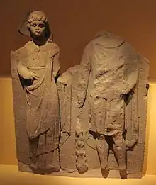 In Gallo-Roman religion, Ancamna was a goddess worshipped particularly in the valley of the river Moselle. She was commemorated at Trier and Ripsdorf as the consort of Lenus Mars,[1] and at Möhn as the consort of Mars Smertulitanus.[2][3] At Trier, altars were set up in honour of Lenus Mars, Ancamna and the genii of various pagi of the Treveri, giving the impression of Lenus Mars and Ancamna as tribal protectors honoured in an officially organized cult.[4][5] Among the few statuettes left as votive offerings at the sanctuary of Mars Smertulitanus and Ancamna at Möhn is one of a genius cucullatus like those offered to the Xulsigiae at the Lenus Mars temple complex in Trier.[6]