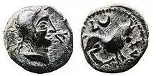 Along the east coast and particularly in the northeast a great number of towns minted silver drachmas. Some of these coins imitate the drachmas of Emporion or Massalia, while others have Iberian legends, a few of which can be related to towns or peoples but many of which are unknown or illegible.[25] This silver coinage is generally seen as minted by the pro-Roman side, particularly as little Roman coin seems to have reached the Peninsula given the concurrent fighting in the Italian Peninsula.[26] But given the fluid situation of the war, particularly in the early years, some of these emissions may have been minted to aid the Carthaginian cause.[27]