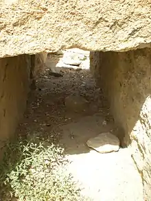 The Ancient Graves are situated near Wahi Pandhi, Johi tehsil, Dadu District, Sindh, Pakistan, on the top of the hills near foothills of Kirthar Mountains Range. These columned graves are constructed with large slabs of stone on ground surface. The graves are open from northern and southern sides. The western and eastern sides of graves are constructed with stone slabs and also the graves are covered from upper side with slabs. The carpse were placed on ground surface in the graves. The bones can be observed in columned graves on ground surfaces in graves. Due to inscribed word "Behdin" on stone of one grave, it is believed that these ancient graves belonged to Zoroastrians. The word behdin means the good religion which is related to Zoroastrianism.