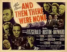 And Then There Were None is a 1945 film adaptation of Agatha Christie's 1939 mystery novel of the same name, directed by René Clair.[3] It was released in the United Kingdom as Ten Little Indians,[4] in keeping with the third United Kingdom title of Christie's novel.[5] The film was produced by 20th Century Fox and due to the lapsed copyright, it is now in the public domain.[6] The film has been remastered multiple times and is freely available online.[7]