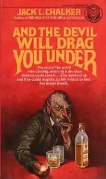 And the Devil Will Drag You Under (1979) is a comic fantasy by American writer Jack Chalker involving an alcoholic demon and two humans he summons to collect the pieces of a mystic artifact that the demon requires to save Earth from an asteroid on a collision course. The humans' journeys include both mystical transformations of their bodies and trips to worlds that parodied famous fantasy novel locales.