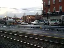 ![]() Anderson Street station in April 2014, after completion of the new shelter that replaced the old 1869 station depot. | |||||||||||||