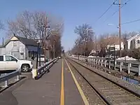 In 1976, the Erie Lackawanna was combined with several other railroads to create the Consolidated Rail Corporation, who continued maintenance of the New Jersey and New York Line for the next seven years, until the newly formed New Jersey Transit took over the station in 1983.[11] On March 17, 1984, the station building, now 114 years old, was added to the New Jersey Register of Historic Places and by that June, the station was added to the National Register of Historic Places.[12] The station building was restored in 2001 by contractors from Jablonski Building Conservation Incorporated in Midtown Manhattan, who had experience restoring train stations.[13] The building conservation repainted the old station's wooden siding yellow[14] and the bay windows to a brand new brown on the station's ground-level platform.[15]
